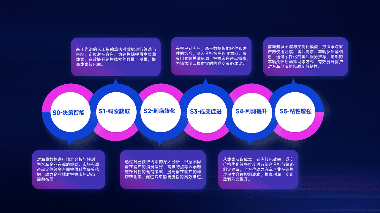通过拓宽潜在客户来源、、、、优化线索分配并提高到店转化率,,以增强销售效率。。同时,,,利用线索数据不断优化分析模型,,有效提升转化率,,扩大营销影响力。。。